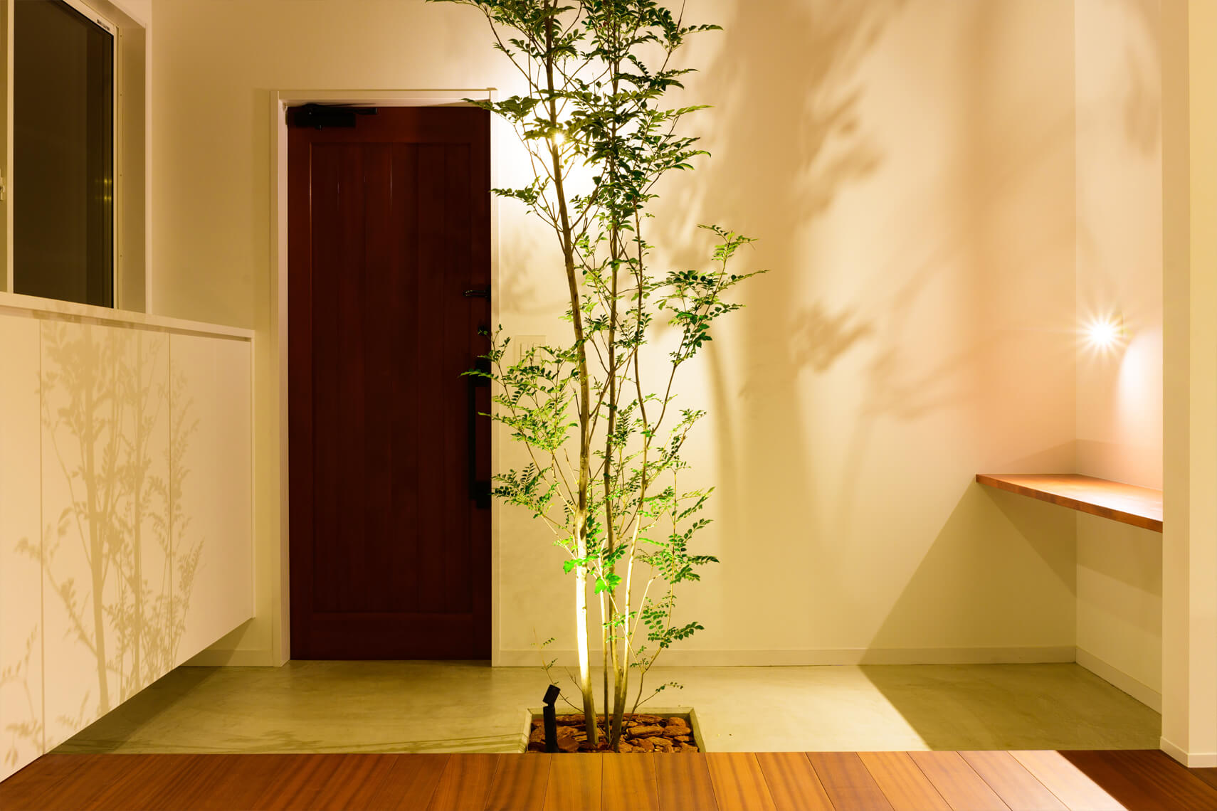 南側の吹抜けは、燦燦と光の注ぐエントランスにある。